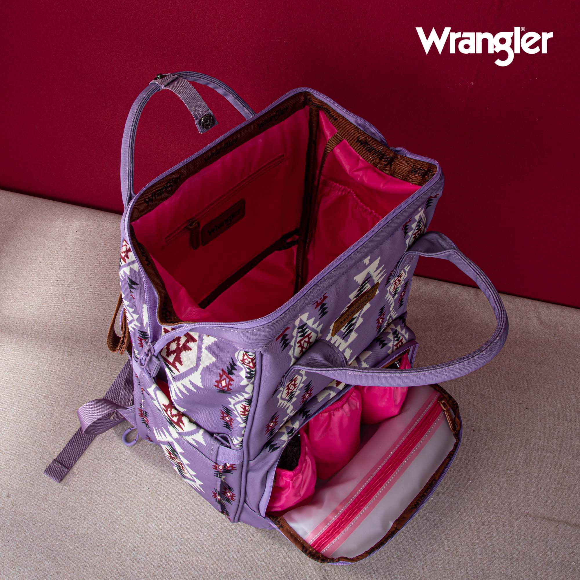 2024 New Wrangler Aztec Southwestern Pattern Dual Sided Print Multi-function Backpack-Lavender