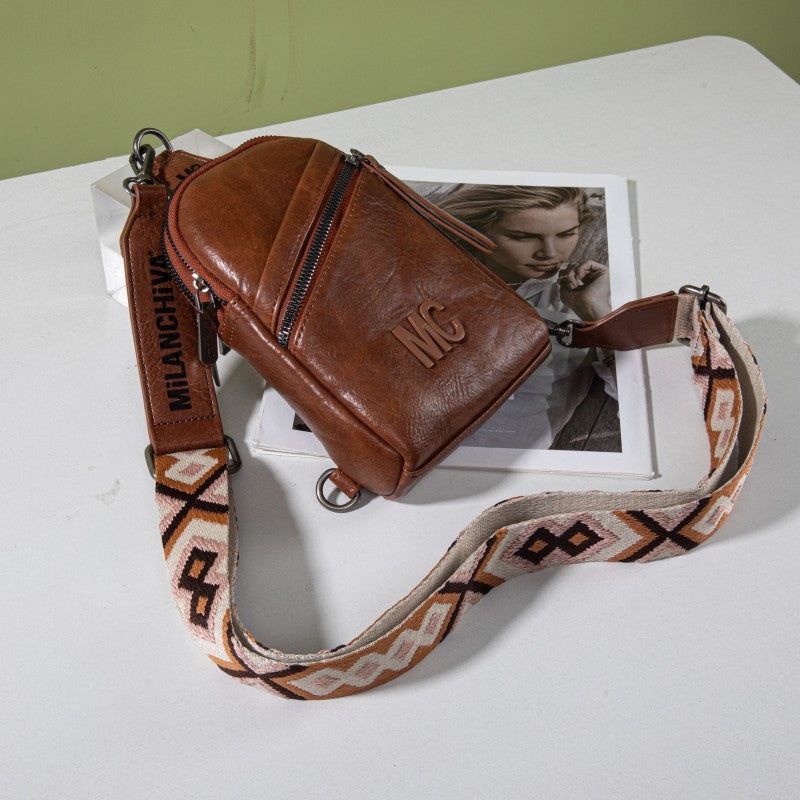 The Aztec-patterned strap adds a unique touch of Western flair, making it both a stylish and functional choice for casual outings, travel, or daily errands. Despite its compact size, this sling bag offers enough space for your phone, wallet, keys, and other small essentials—perfect for minimalist carry.