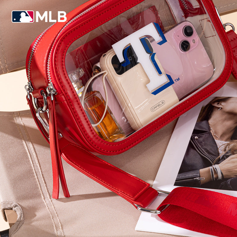 Officially Licensed Major League Baseball Merchandise.At the game. In the crowd. On the go. Youĺve got team spirit in the bag (along with the rest of your stuff) with this Texas Rangers Team Clear Crossbody Bag.
