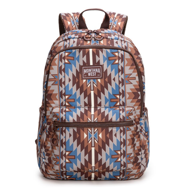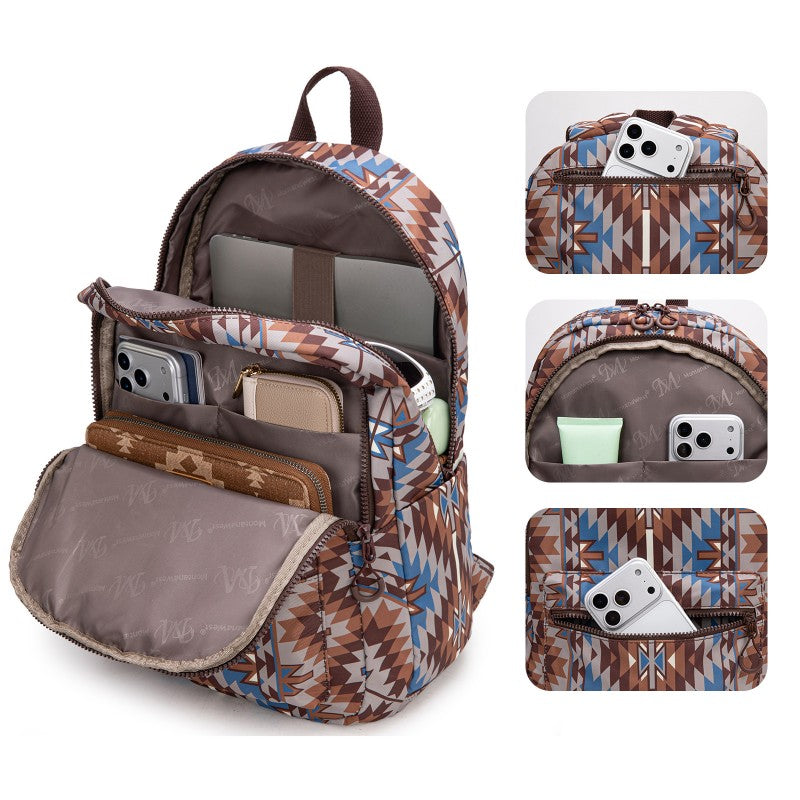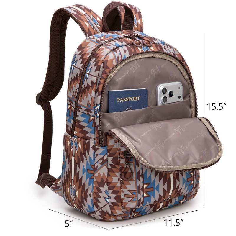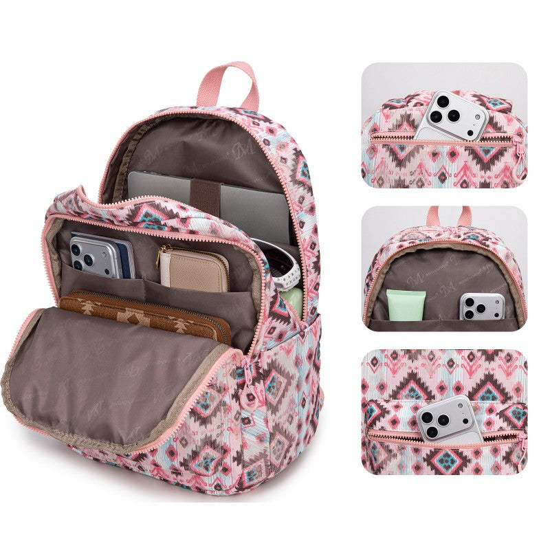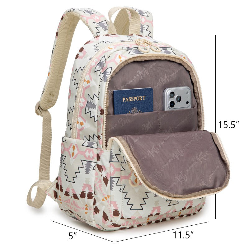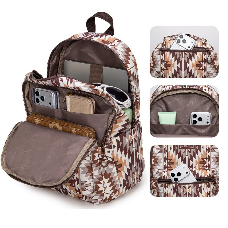 - Details: All-over Aztec print, ergonomic design, 9 pockets, zippered main compartment, padded shoulder straps, unisex style.