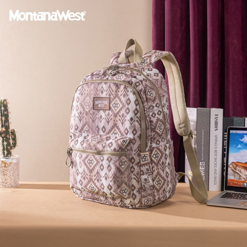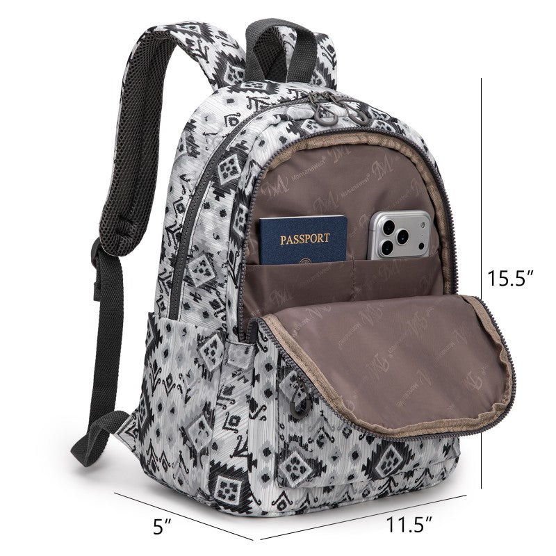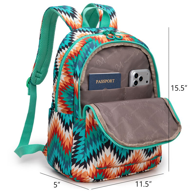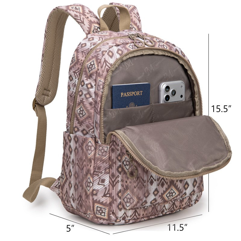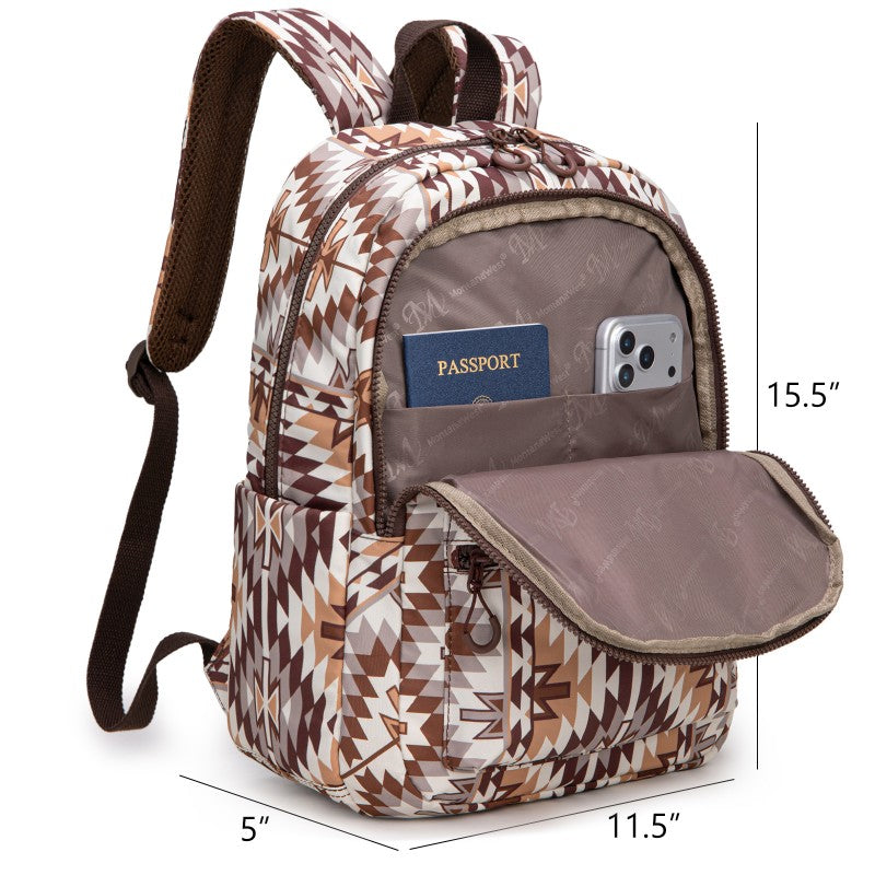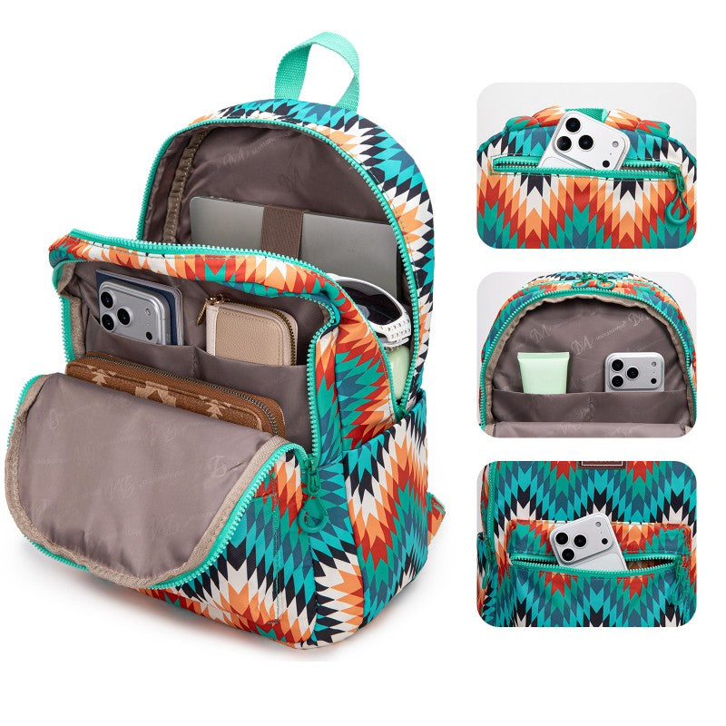 - Details: All-over Aztec print, ergonomic design, 9 pockets, zippered main compartment, padded shoulder straps, unisex style.