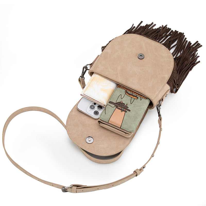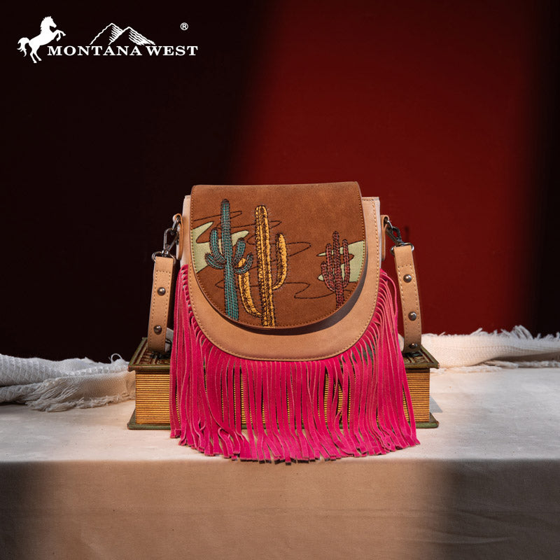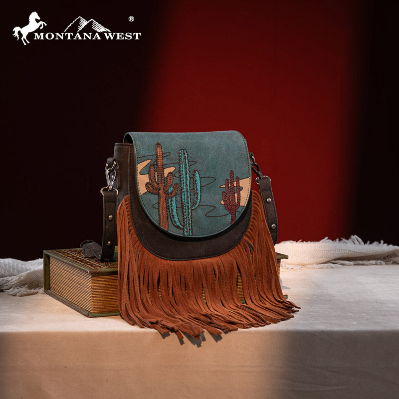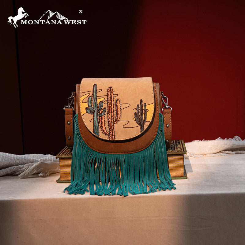 Montana West Cactus Embroidered Fringe Crossbody Bag