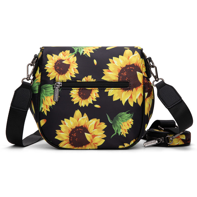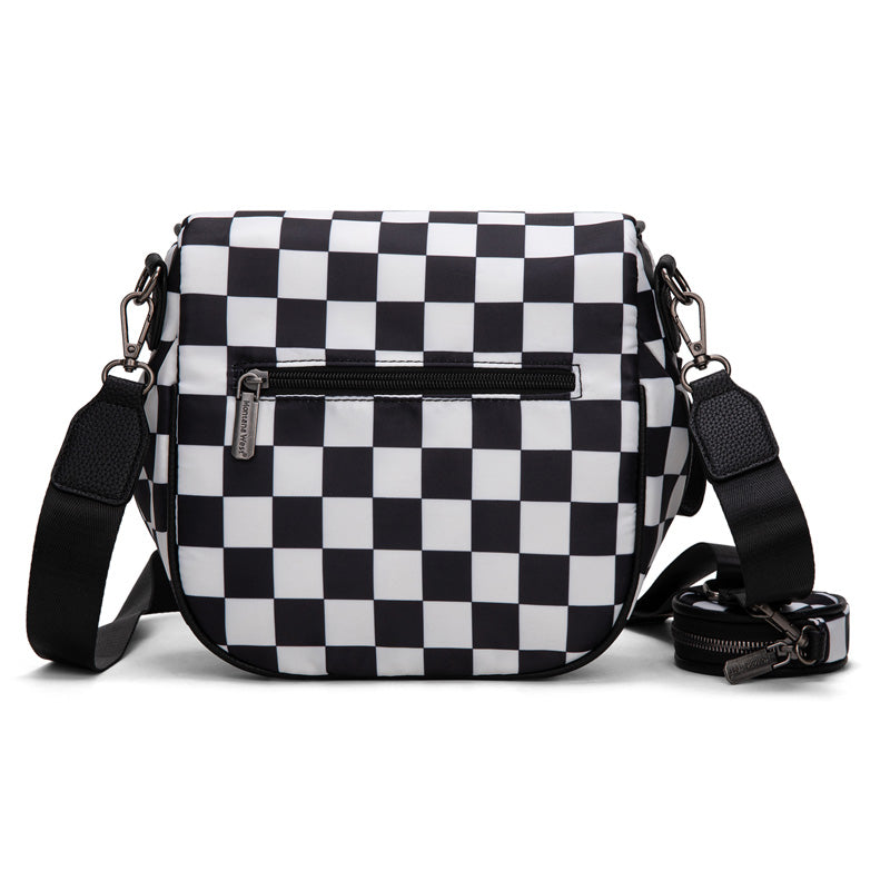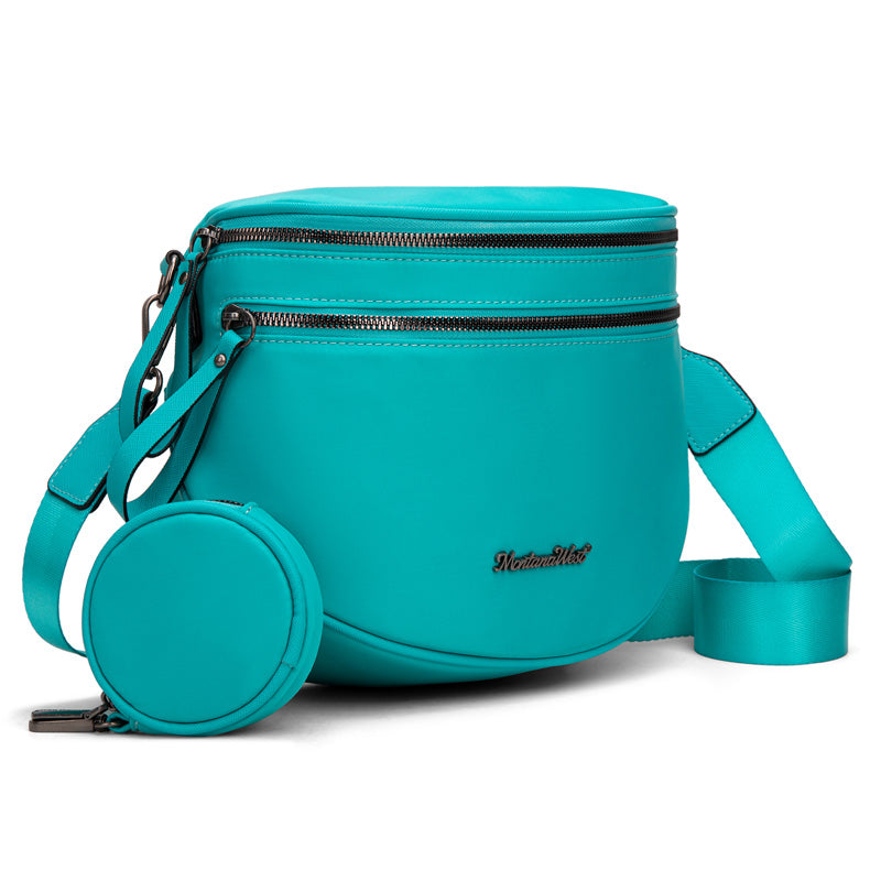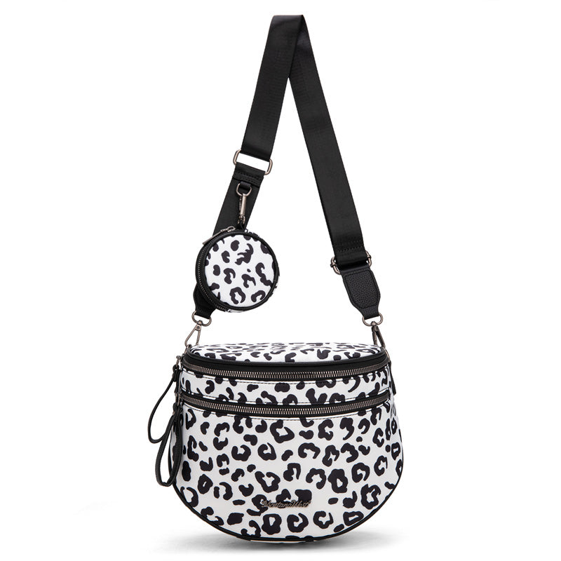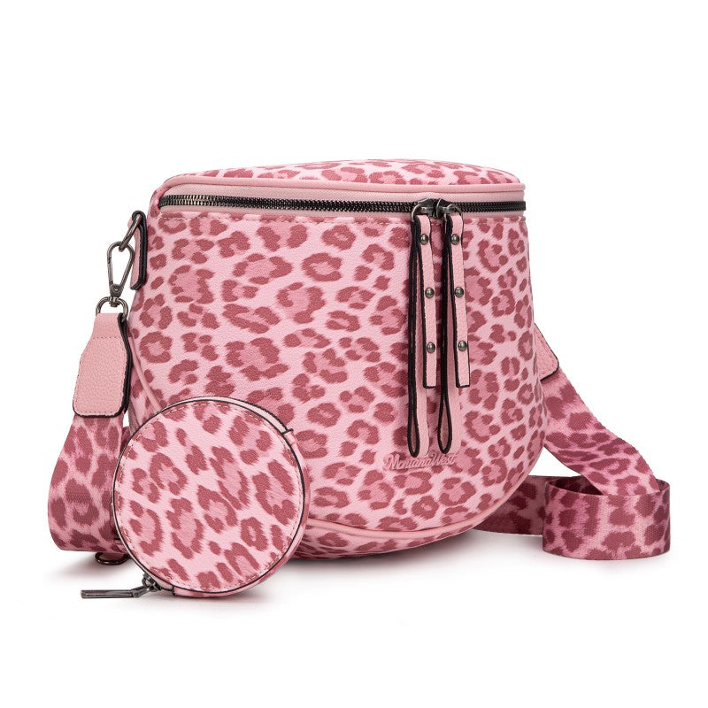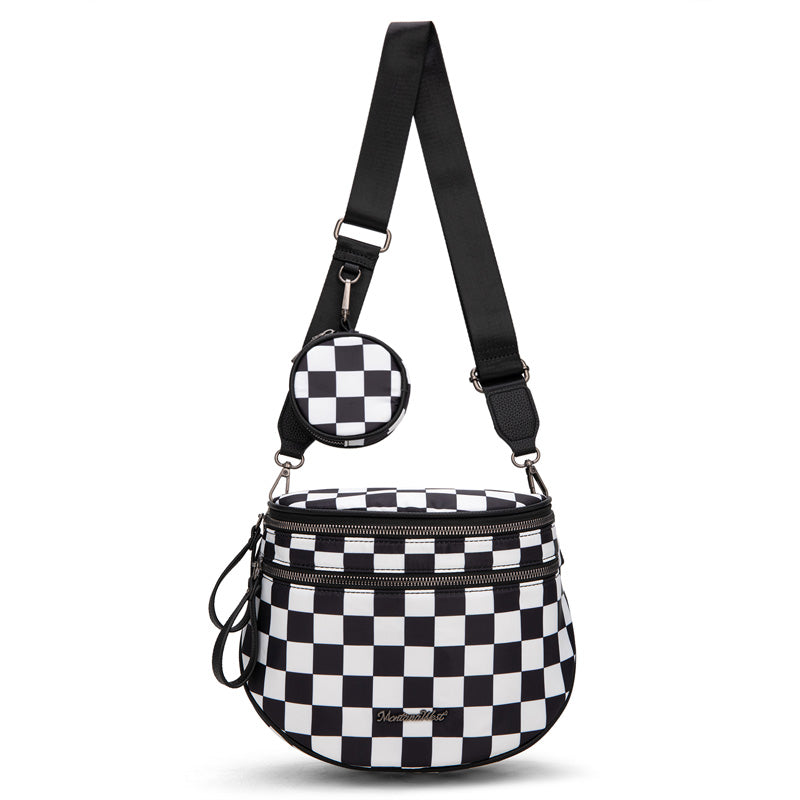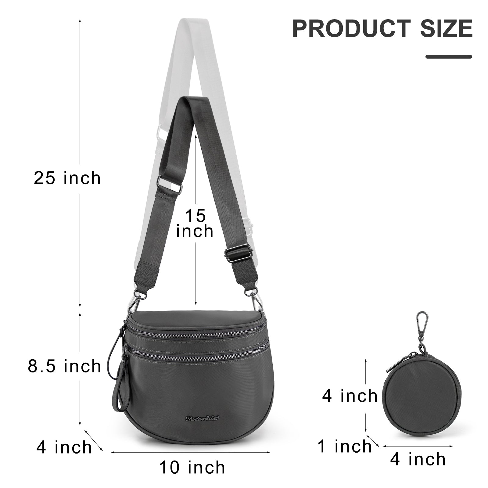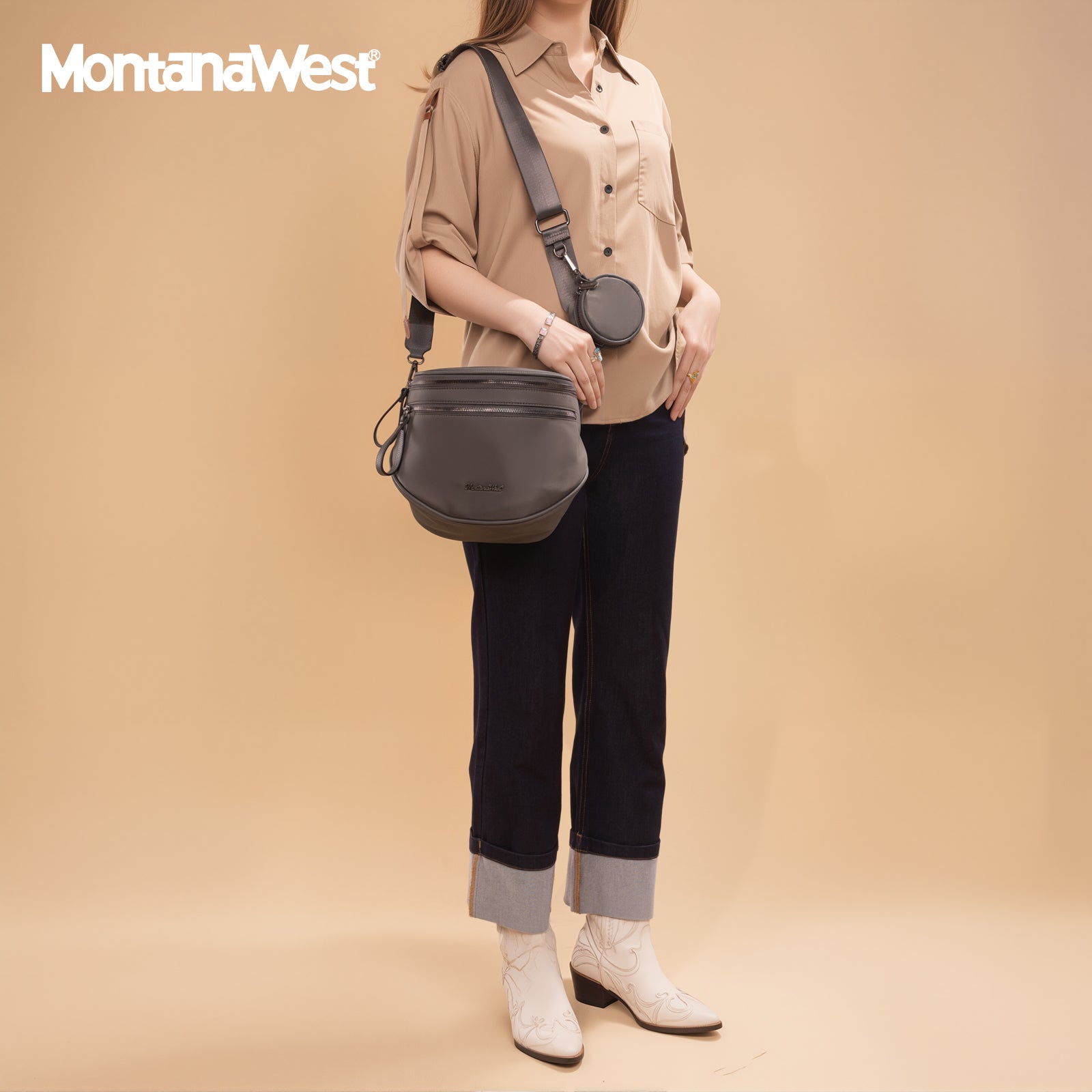 This Montana West crossbody bag is crafted from Nylon Fabric/Vegan leather with dual zip compartments and a matching coin purse. This fanny pack is perfect for hands-free style and carrying on-the-go essentials. Available in multiple colors, including bold black-and-white leopard print and checkerboard, Sunflower florals, and more to match any outfit
