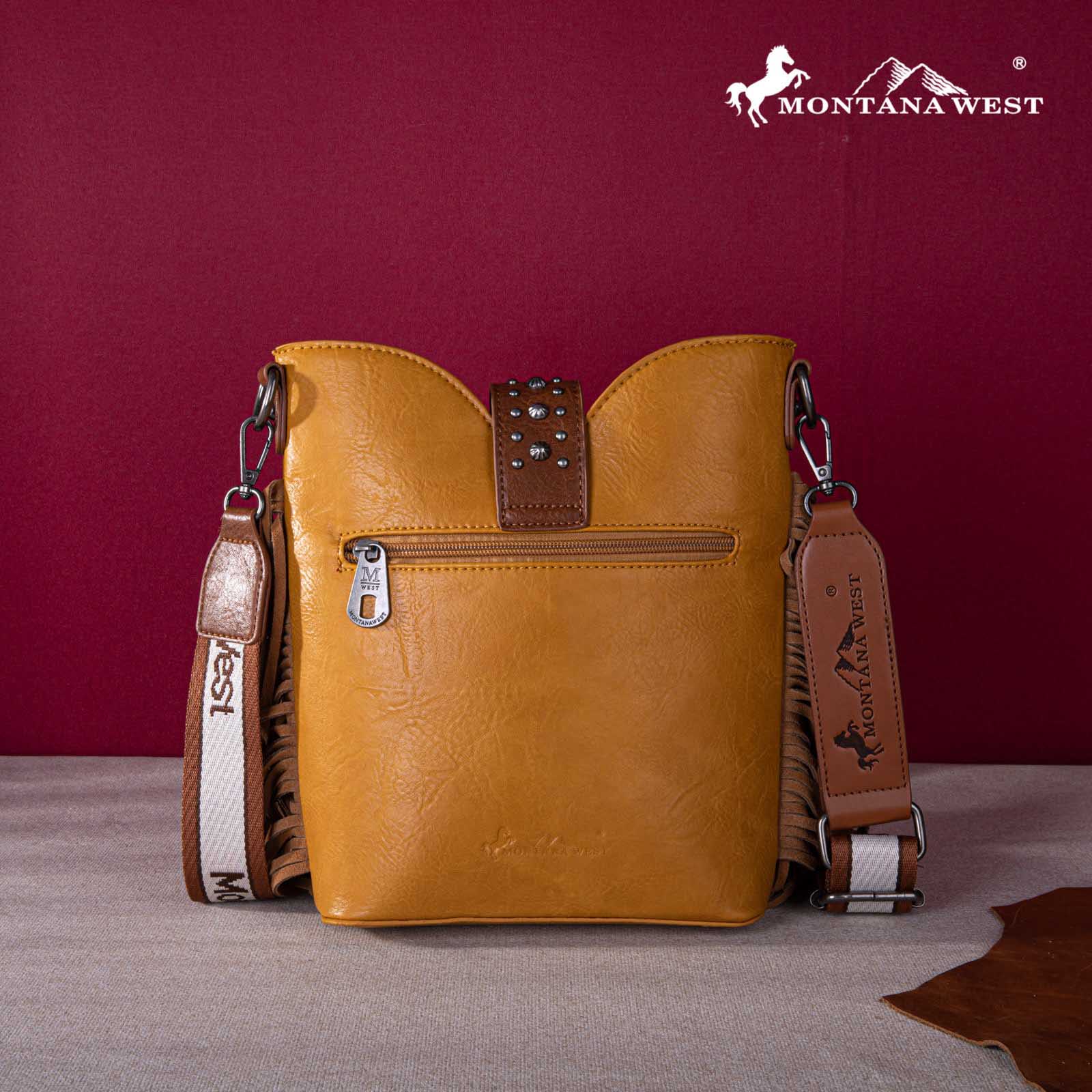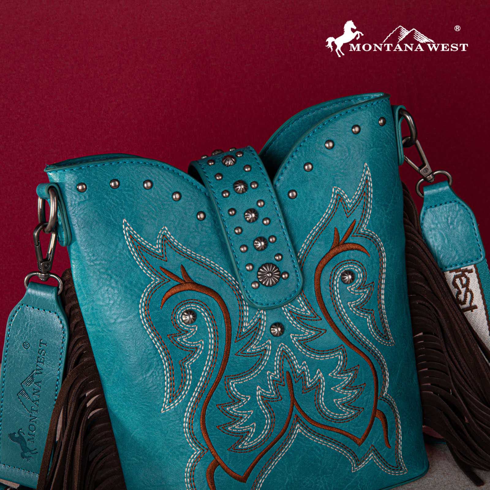 Montana West Embroidered Fringe Collection Boot Purse Crossbody