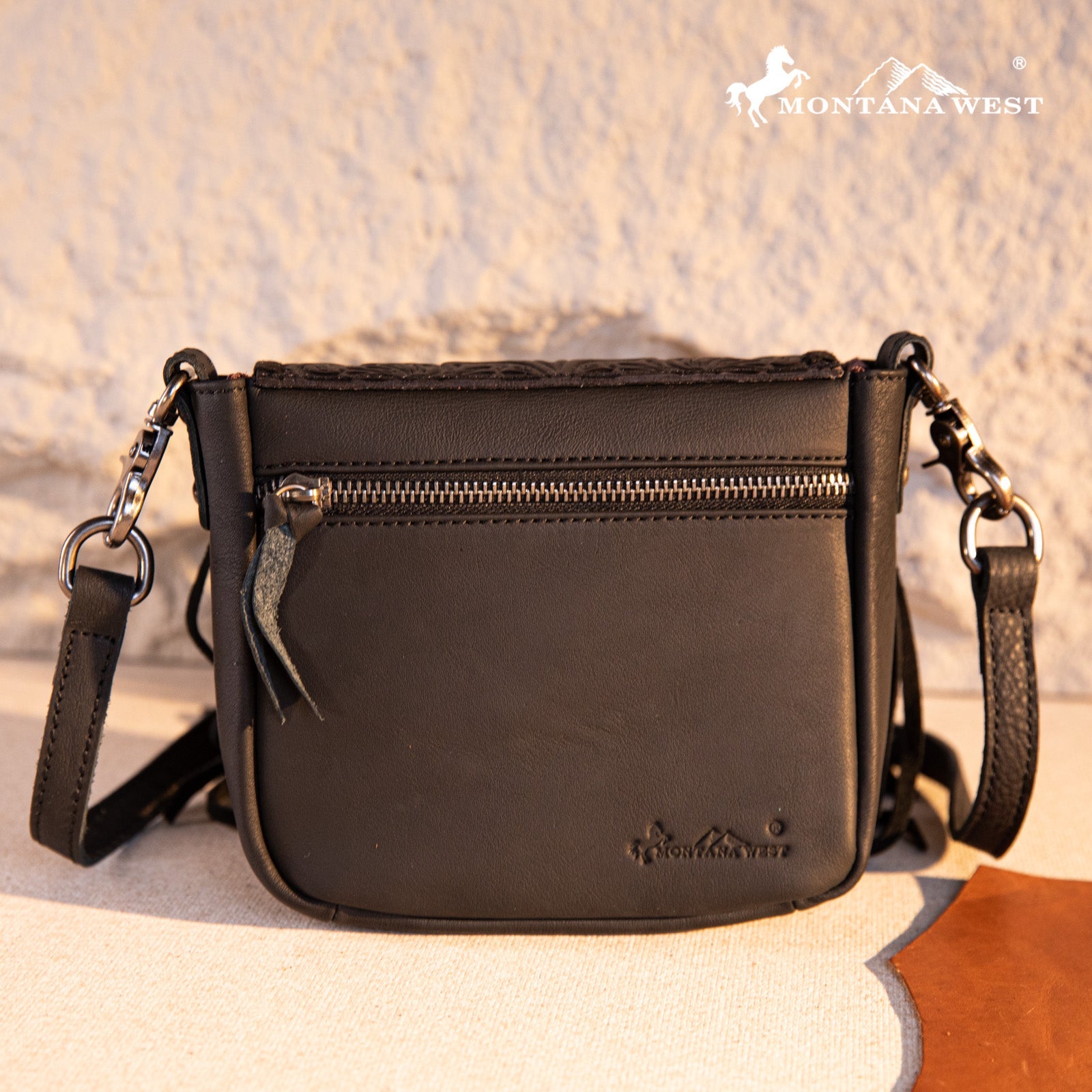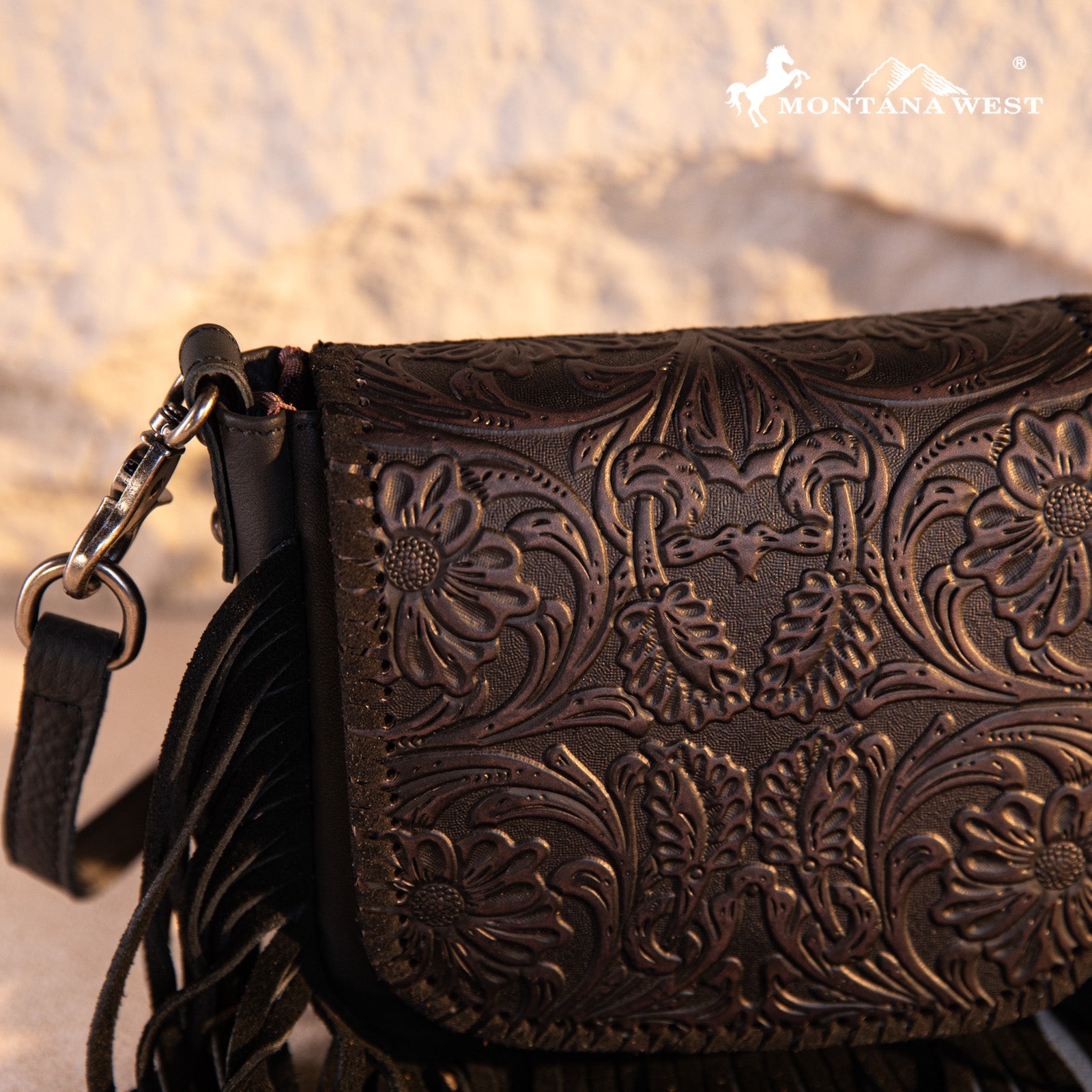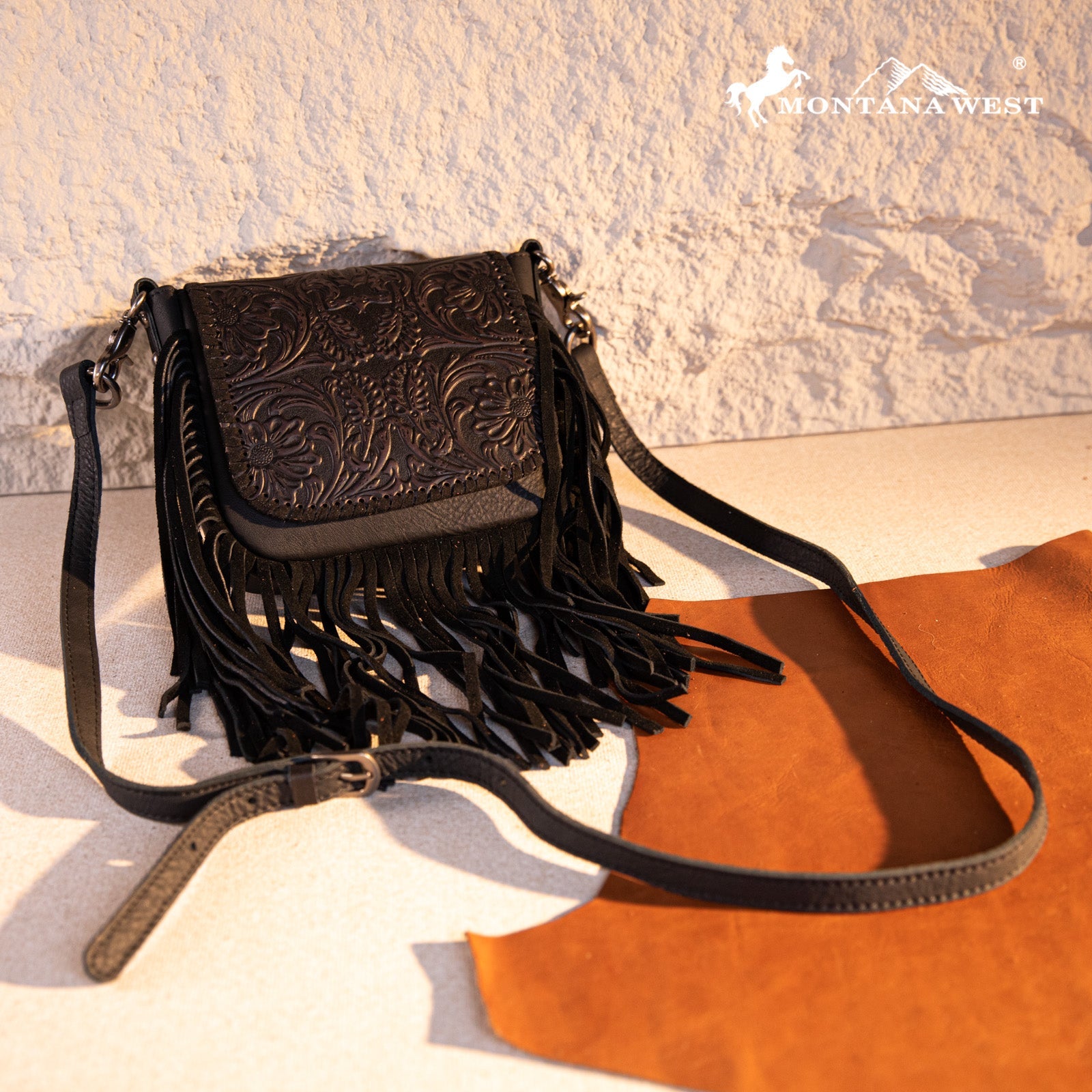 Montana West Genuine Leather Tooled Fringe Crossbody