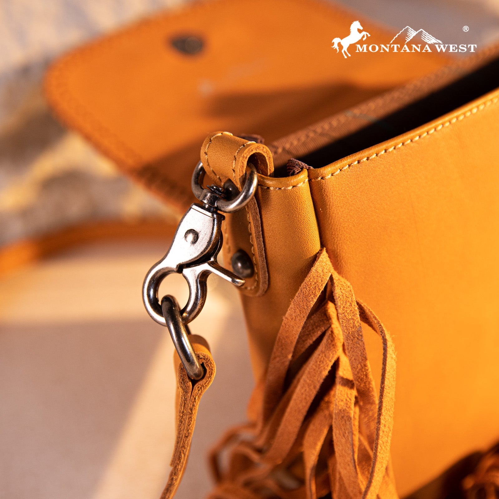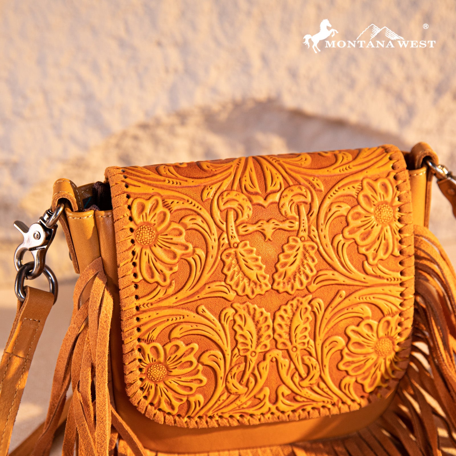 Montana West Genuine Leather Tooled Fringe Crossbody