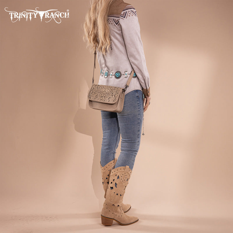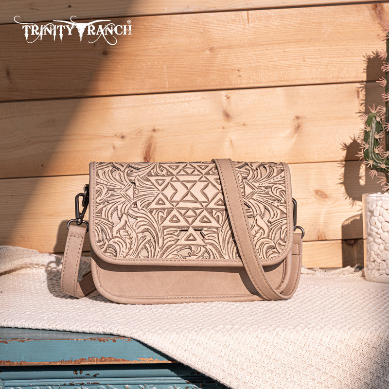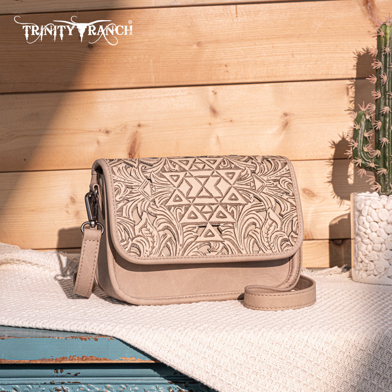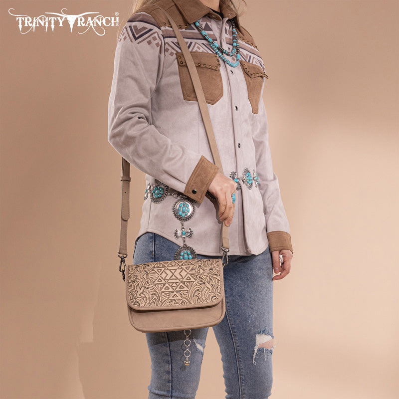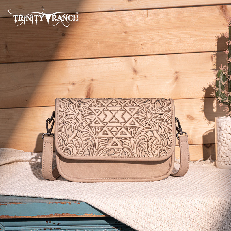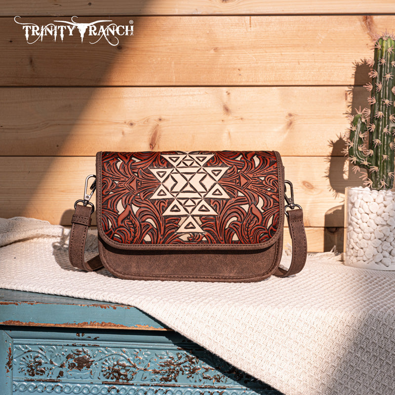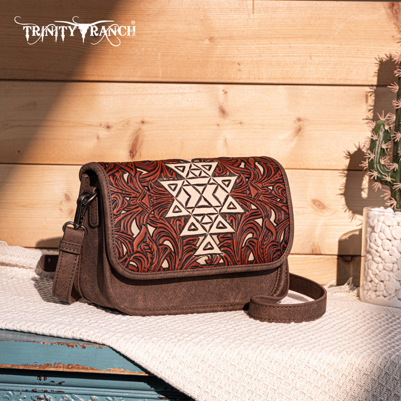 Trinity Ranch Floral Aztec Tooled Crossbody