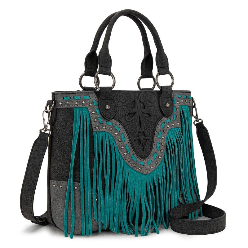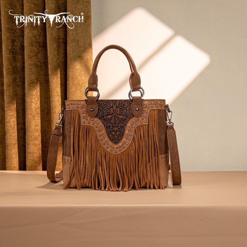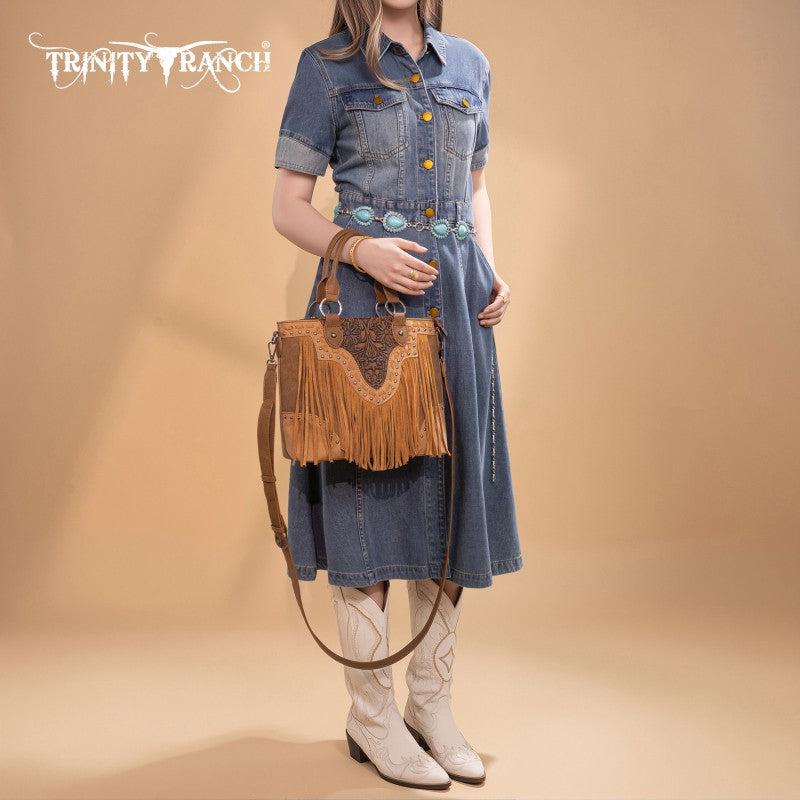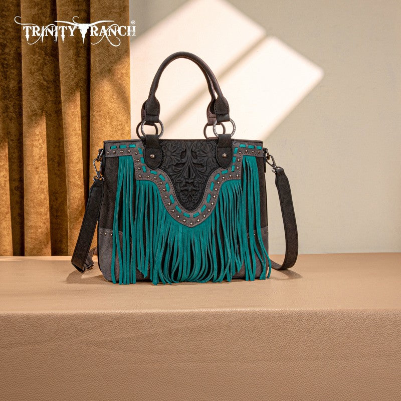 Trinity Ranch Floral Tooled Fringe Tote Bag