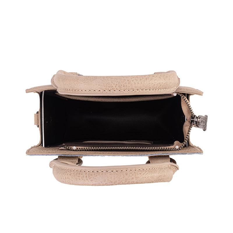 Cowhide upper is natural and will wear under normal conditions. Each bag will vary slightly as each pelt will have a unique pattern.