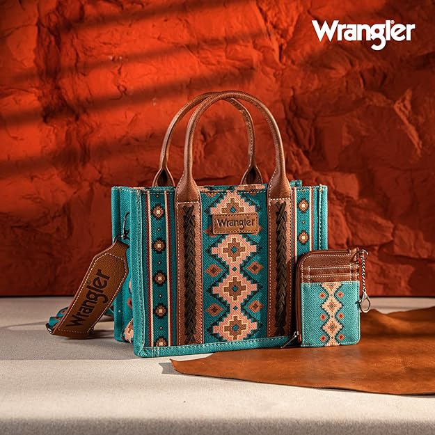 Wrangler Aztec Small Tote/Crossbody and Card Case Set 2Pc- Turquoise