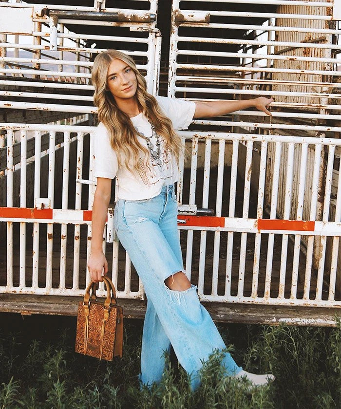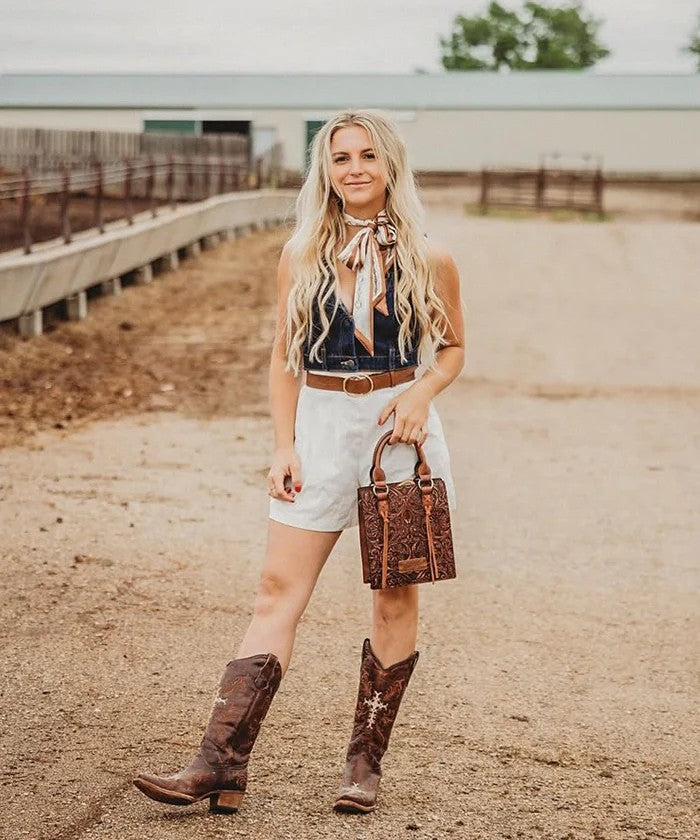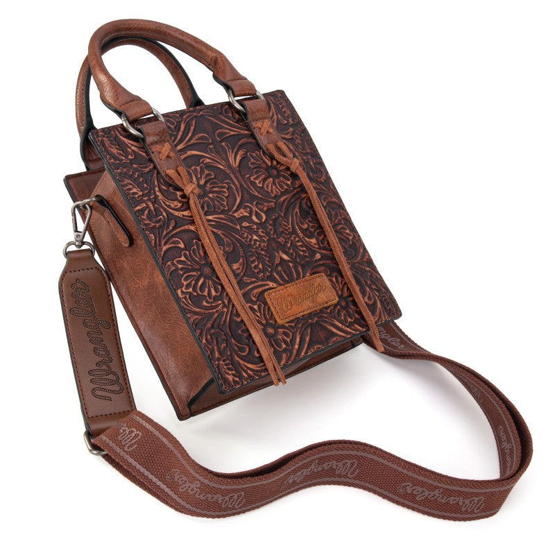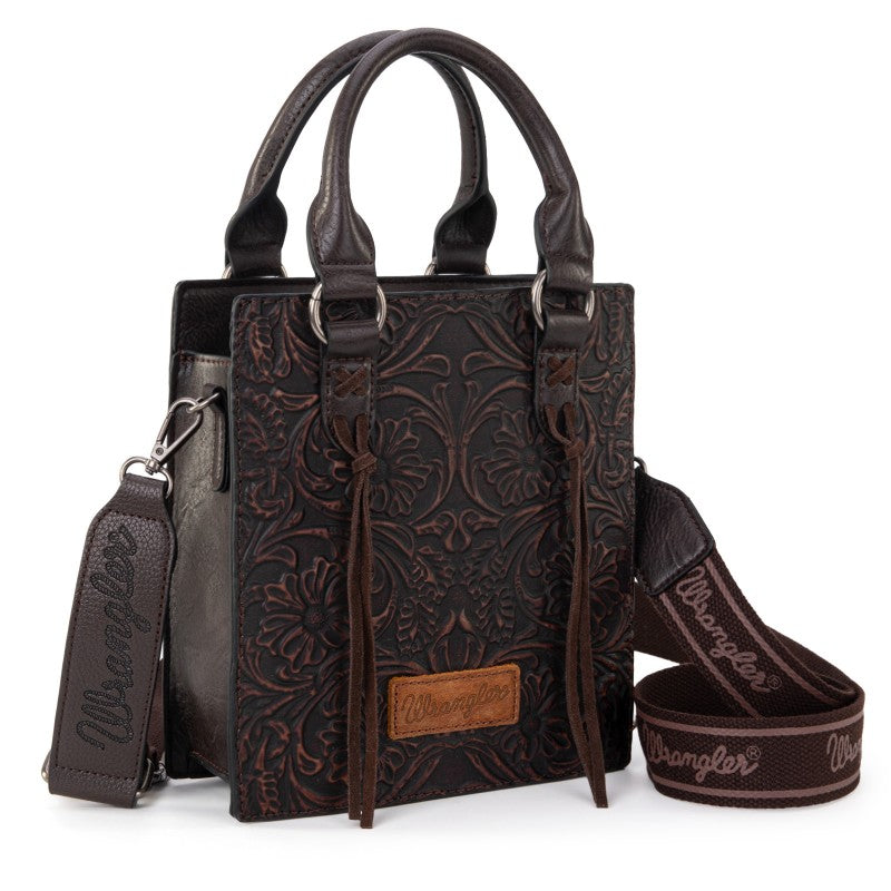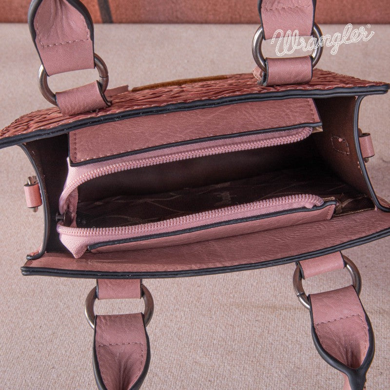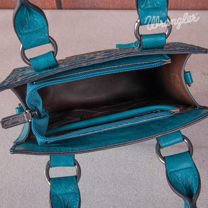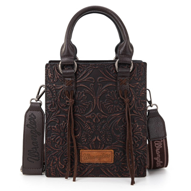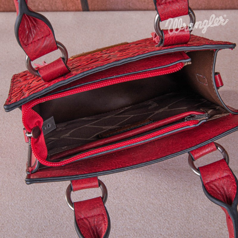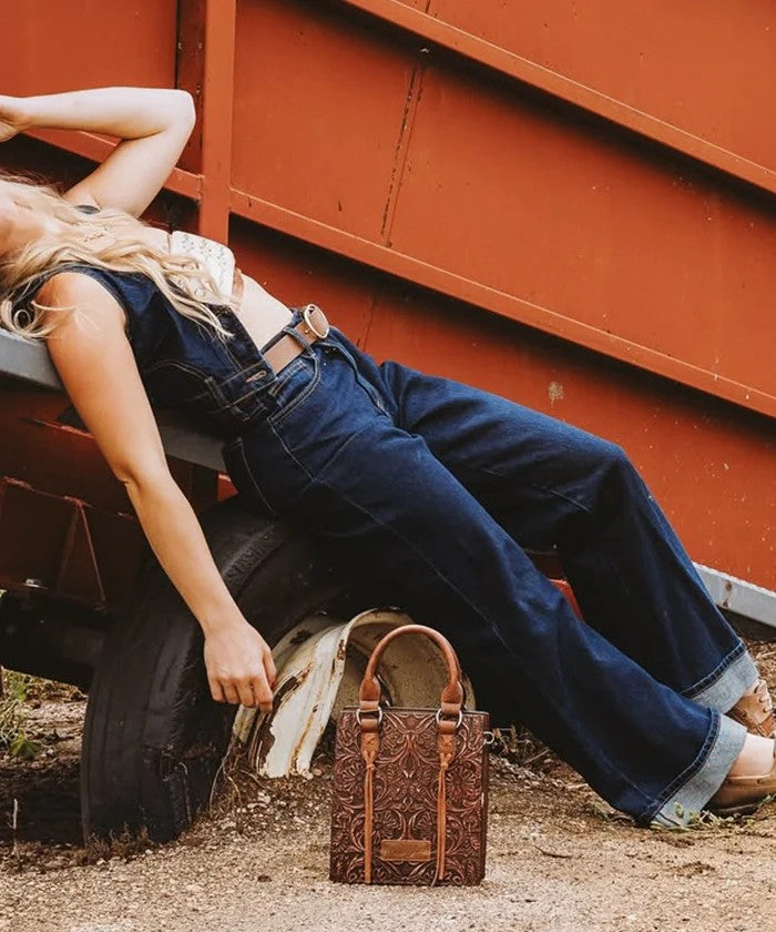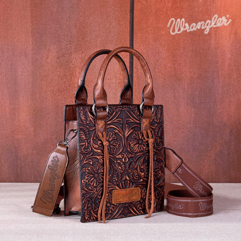 Retro wrangler crossbody bag with hand-coloring design. Features a secure top zipper, multiple card slots, and an interior zip pocket for organized storage. Offers versatile carrying with a top handle and an adjustable crossbody strap. Compact yet spacious, perfect for everyday essentials.