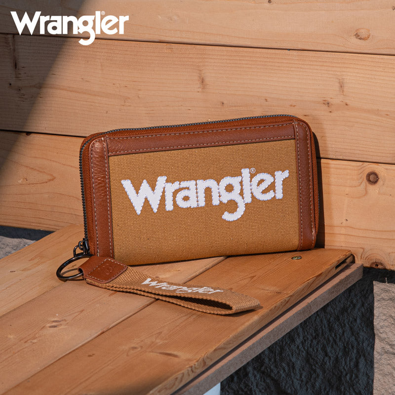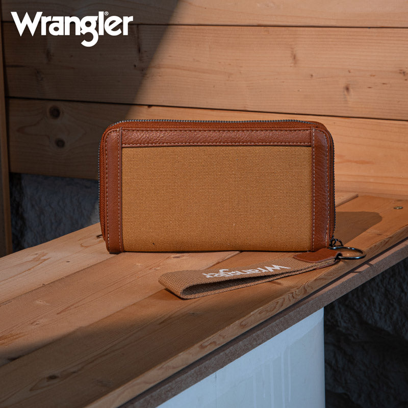 Wrangler Leather Trim Canva Wristlet Wallet