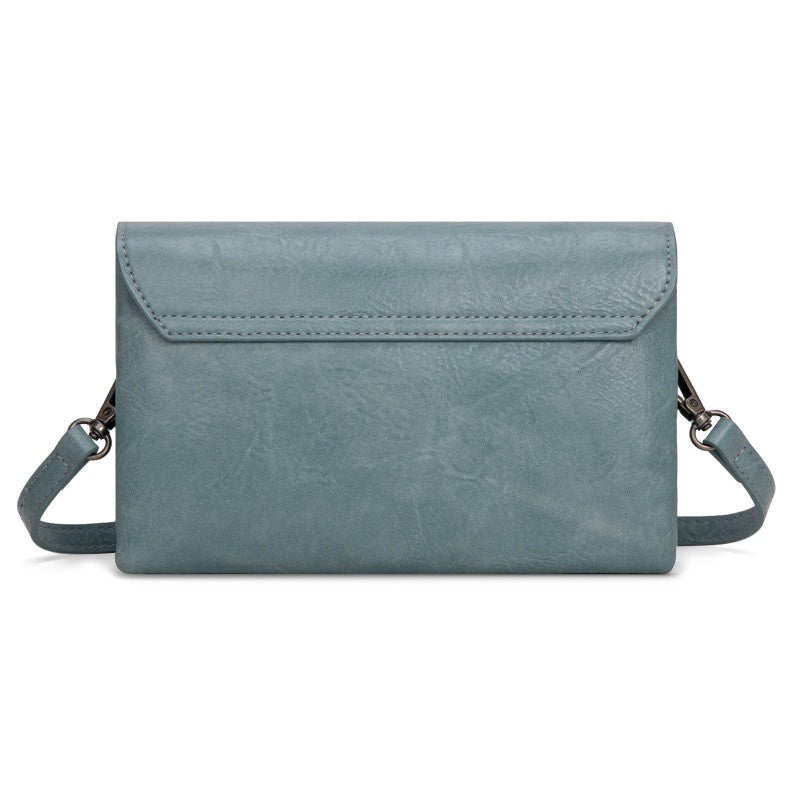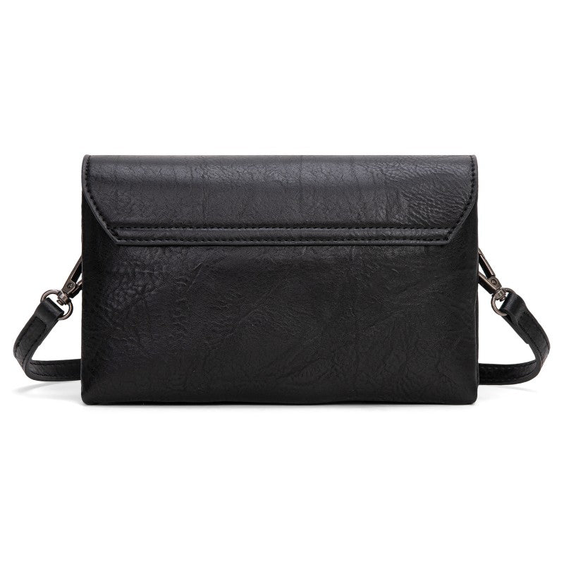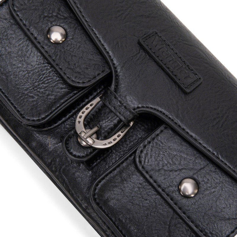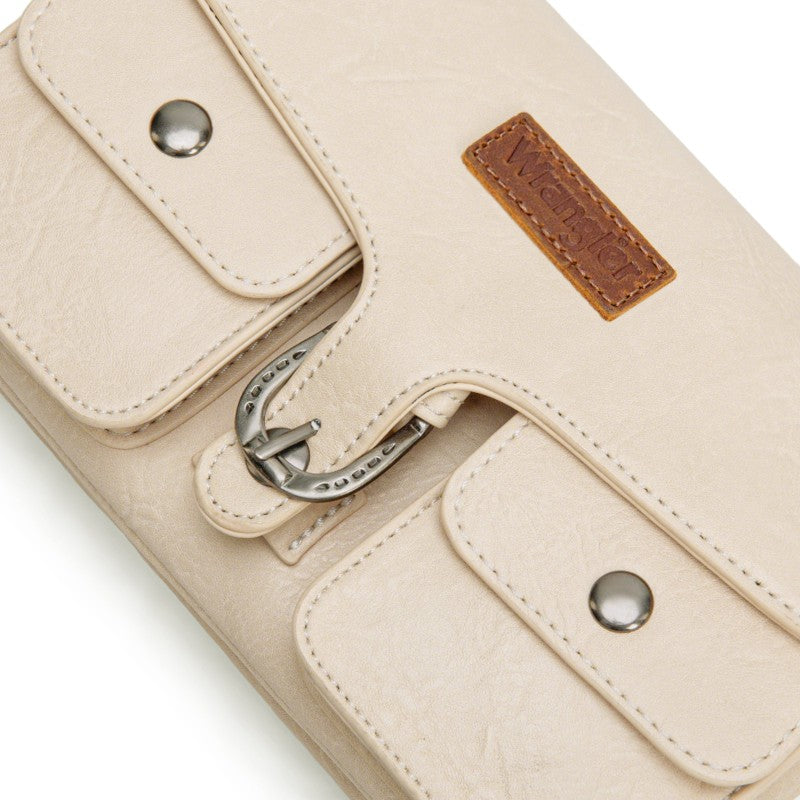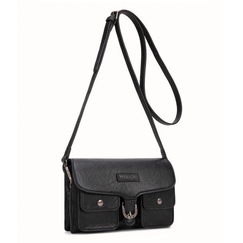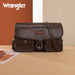 This Wrangler crossbody showcases a classic brown leather design. It features a unique buckle closure and two front pockets with snap buttons, adding both style and functionality. The adjustable strap allows for comfortable wear, making it perfect for daily use. Whether you're going to work or hanging out with friends, this bag combines fashion and practicality seamlessly.