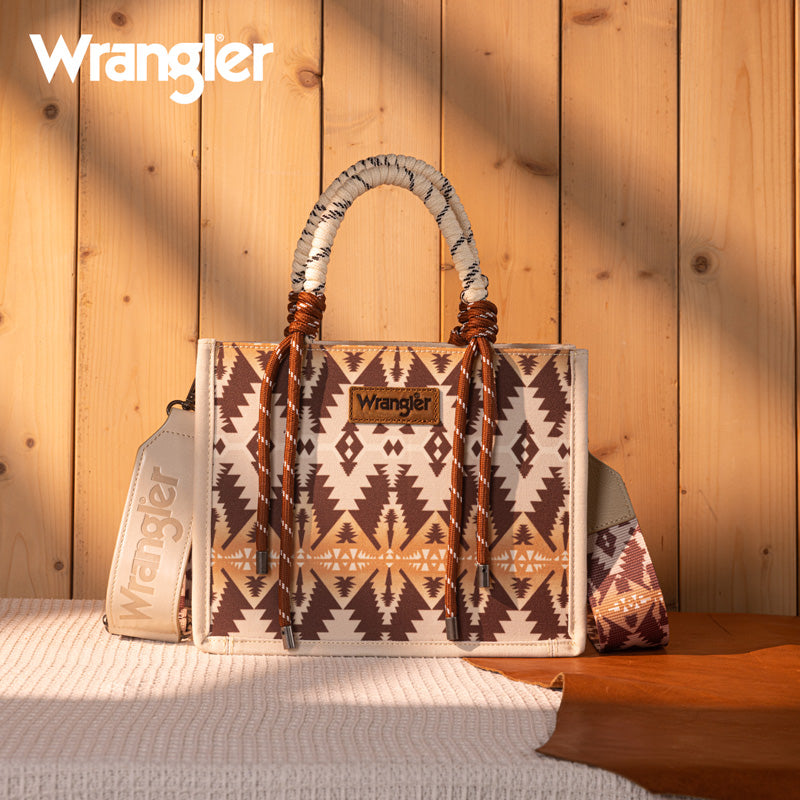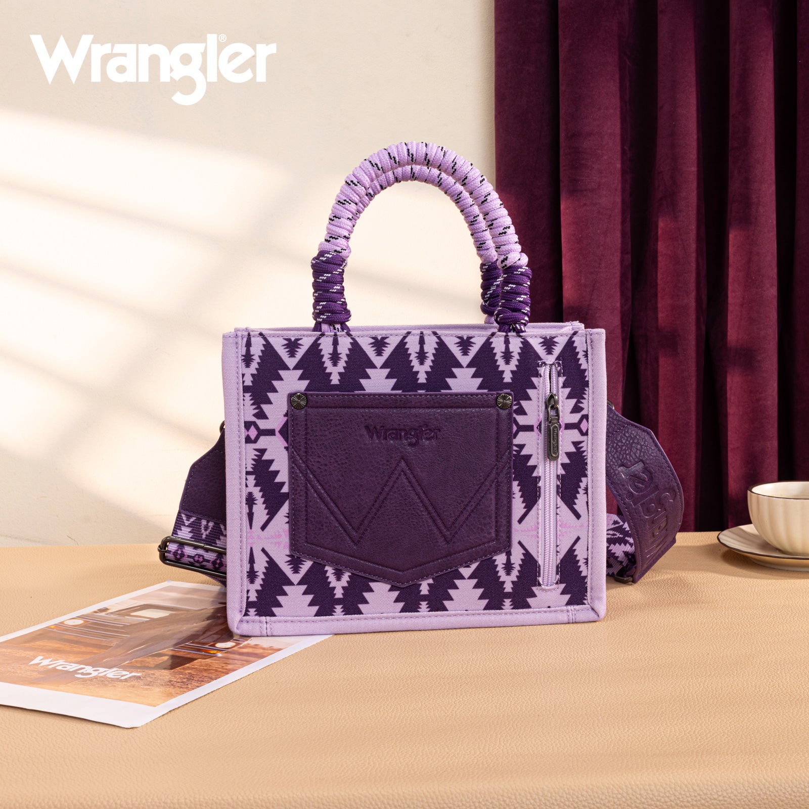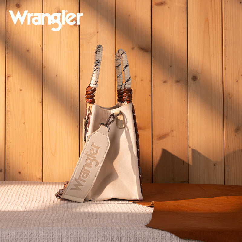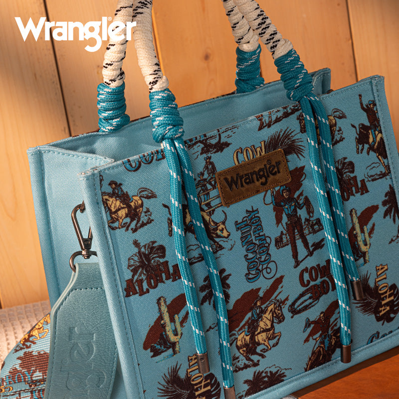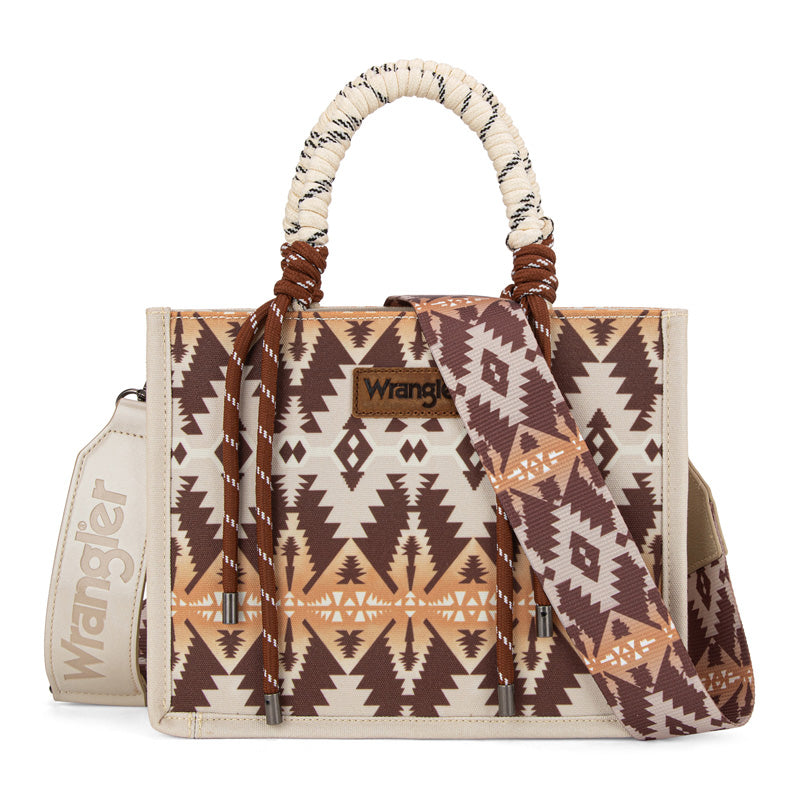 Canvas construction featuring an all-over cowboy/Aztec-inspired cactus and leopard print design, whipstitch details