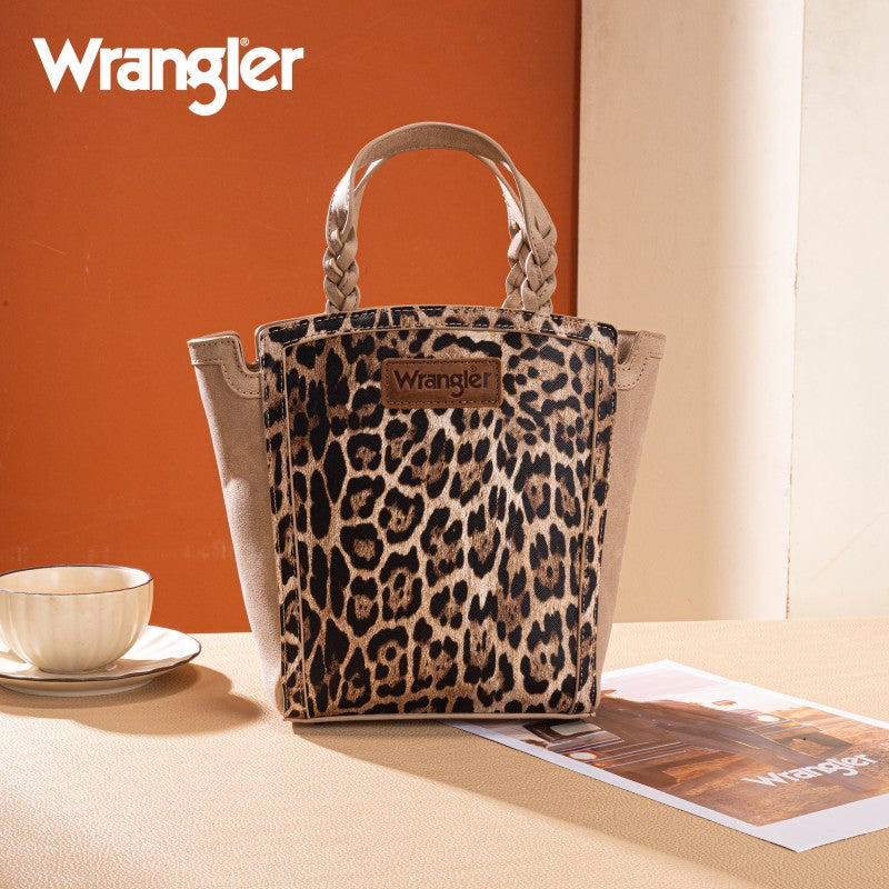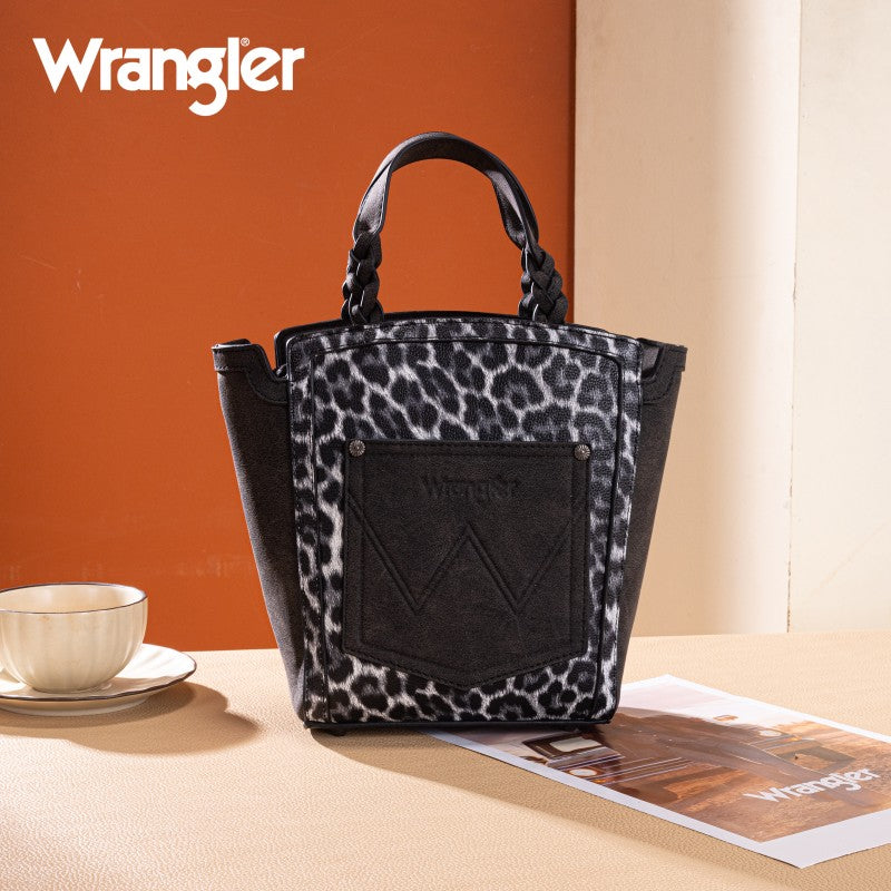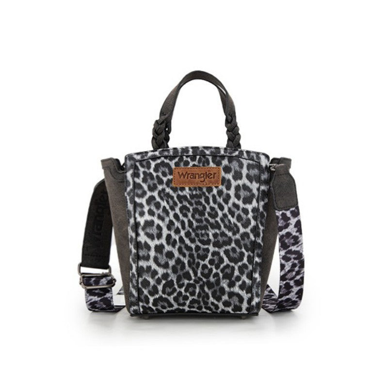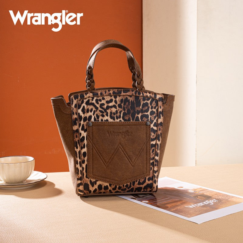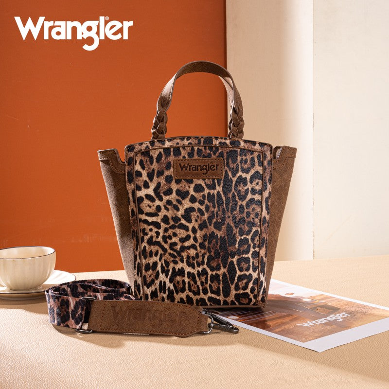 This Wrangler crossbody showcases a bold leopard print and braided top handle, perfect for carrying your wallet, keys, and daily essentials. The detachable strap offers versatile carrying, making this small leopard purse a stylish blend of Western flair and everyday practicality